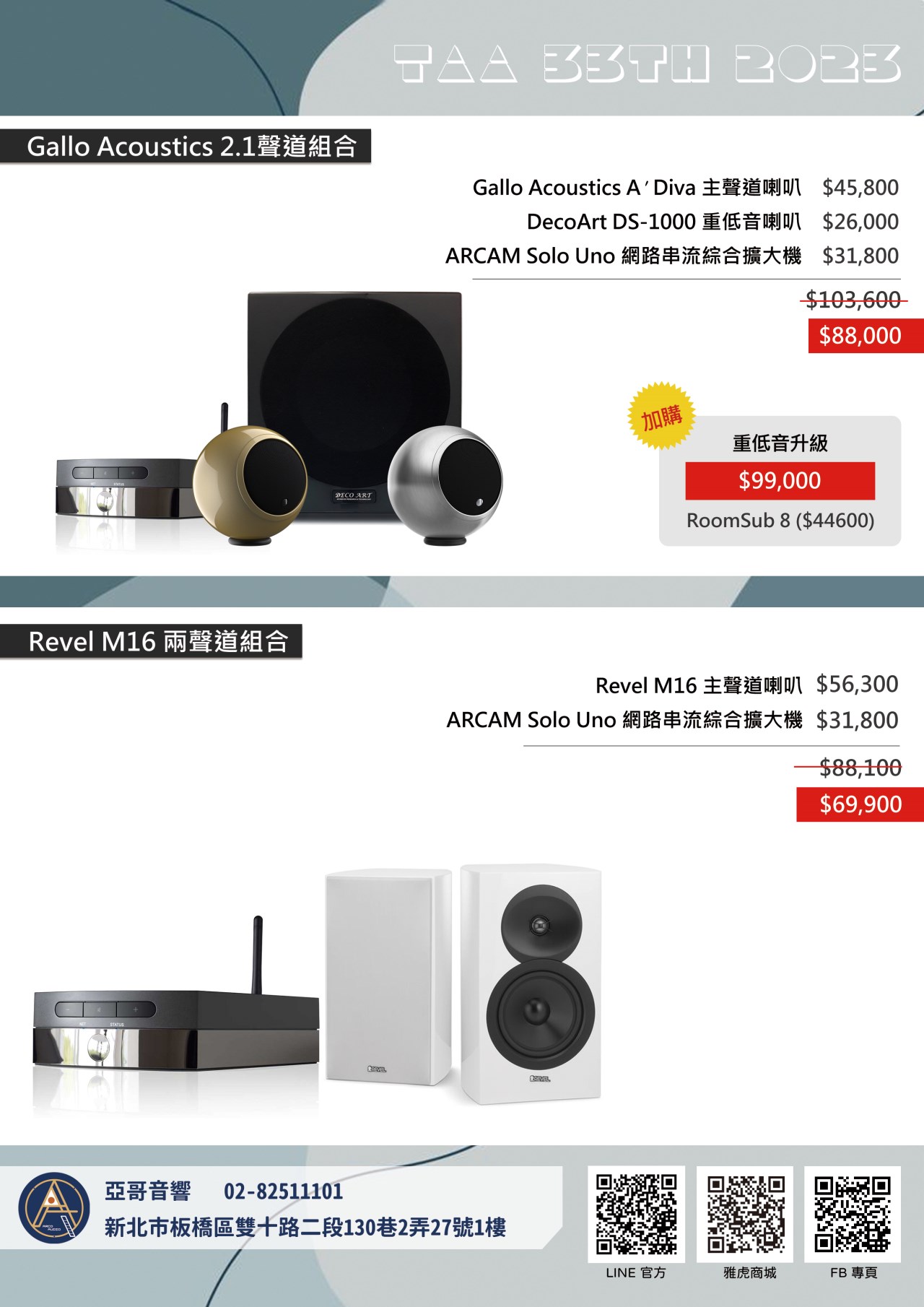 【特價】 Revel M16 / GA A'Diva 兩聲道音響組合
