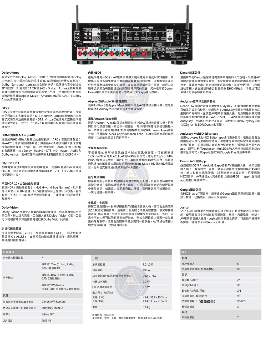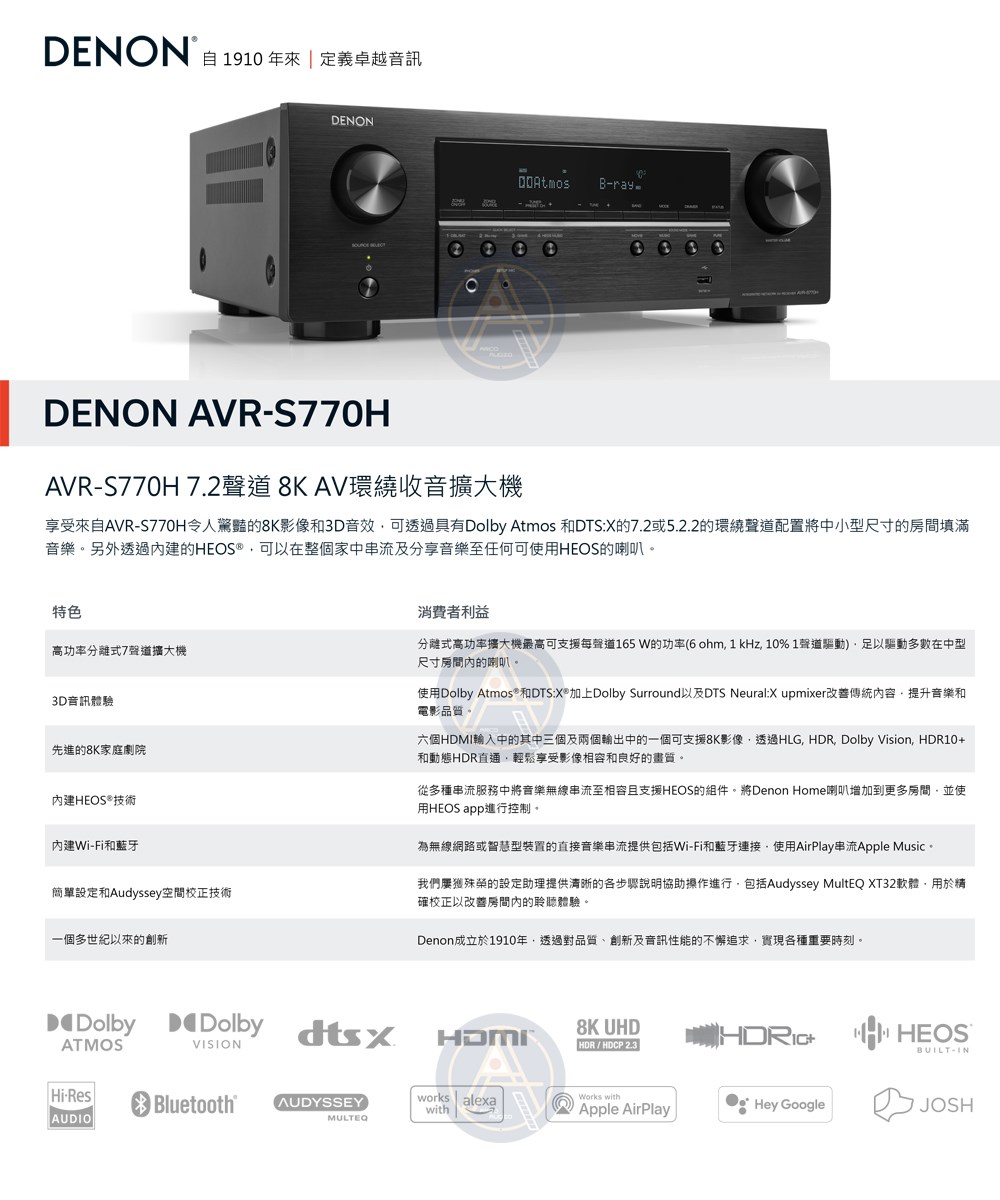 家庭劇院的核心 從具有HEOS 無線音樂串流功能的5.2.2聲道擴大機中享受8K影像和真正的環繞聲。