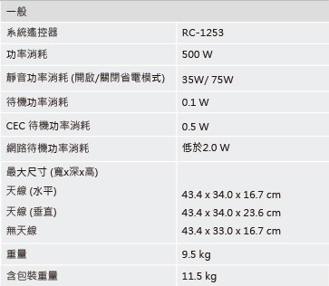 天線: 水平 43.4 x 34.0 x 16.7 cm